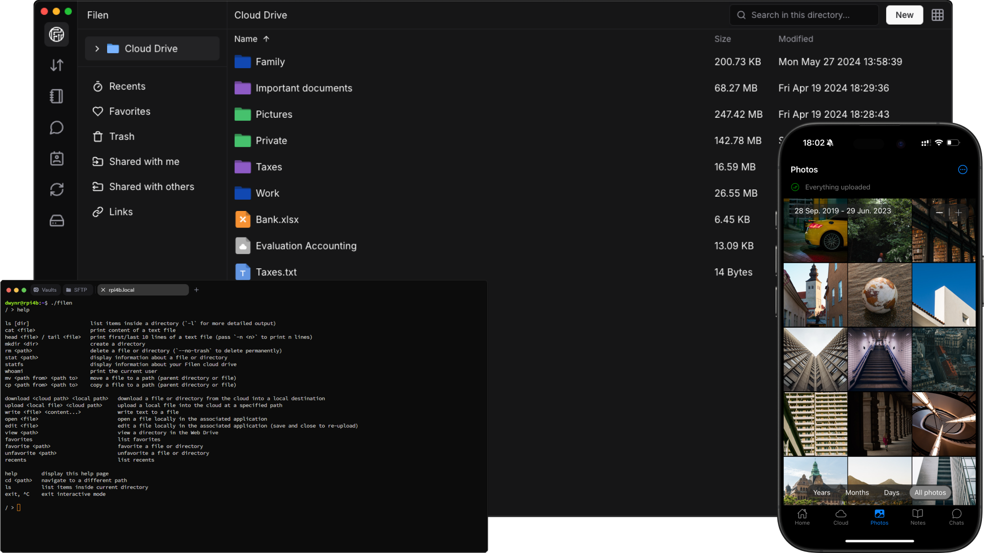 Filen offers a wide range of innovative fully encrypted features, delivering an uncompromised cloud experience. You'll feel at home really fast.